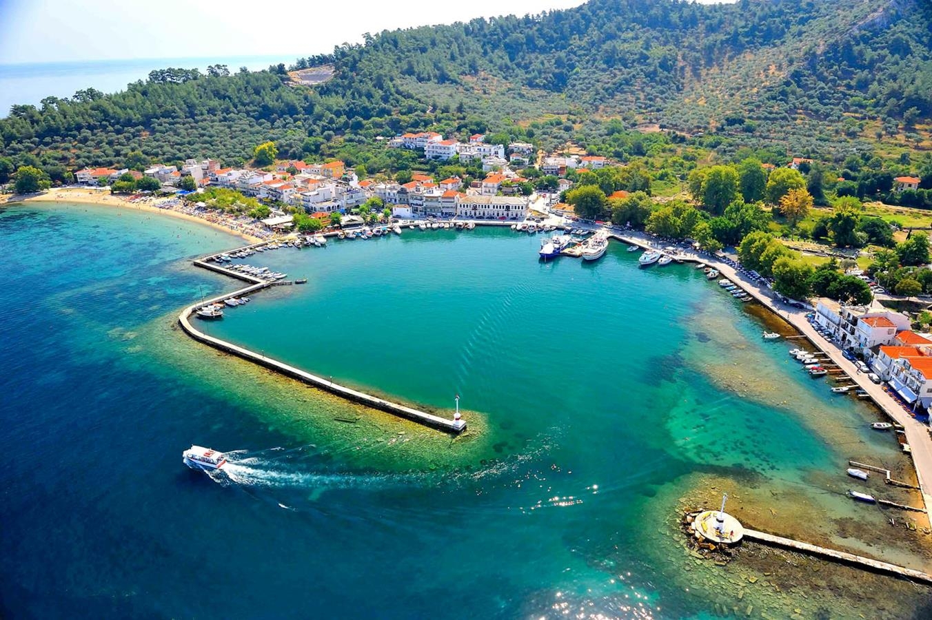 A small, exotic beach in the northern part of Thassos, just km away from Limenas. The water is crystal clear and the coast has a stunning white stone. To reach the beach you must drive with attention to a wide dirt road, which leads to a parking area just before the beach.